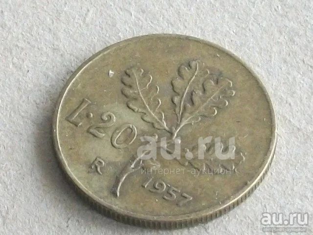 Монета 20 лир Италия 1957 Флора дуб желудь портрет