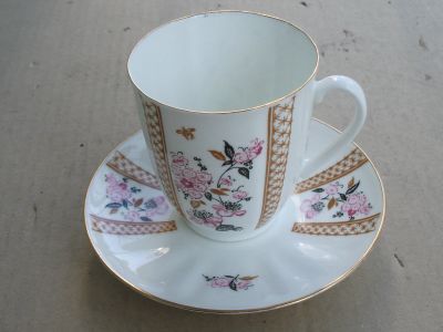 Чайная кофейная пара ЛФЗ литера буква В Вера форма Ландыш костяной фарфор набор Люкс