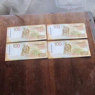 Банкнота 100 рублей сто РФ-Россия бона 2022 АА номера по порядку прес...
