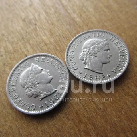 Монета 5 рапп пять Швейцария 1968 портрет. Подлинник. Хорошая.