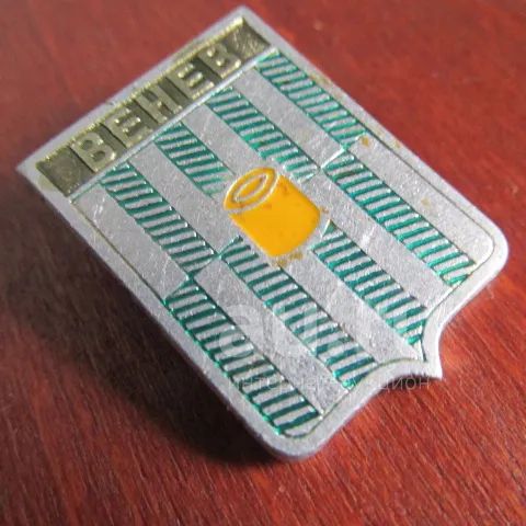 Значок город Венев старый герб на щите, геральдика клеймо, булавка. А...