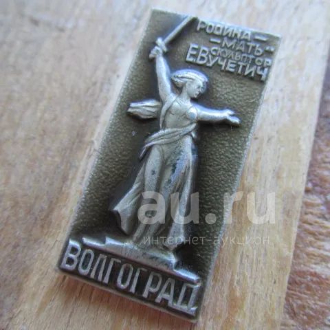 Значок Волгоград. Скульптор Вучетич, обелиск Родина-Мать зовёт. Клейм...