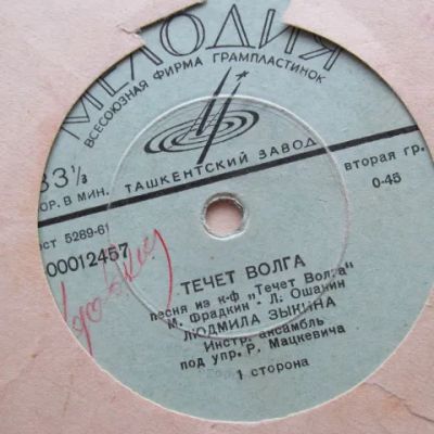 Пластинка Поёт Людмила Зыкина "Течёт Волга" "Рябина" и др. миньон, Ташкент. Конверт.
