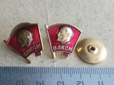 Значок комсомолец член ВЛКСМ знак ММД винт эмаль тяжелый металл склад