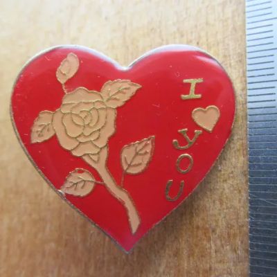 Значок валентинка знак I love You, любовь, сердце , роза лаковый, тяжелый металл цанга импорт