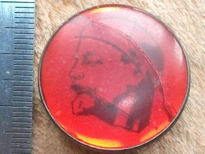 Значок Ленин красный плексиглас металл старый СССР дефект