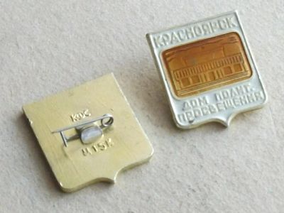 Значок Красноярск Дом политпросвещения архитектура здание клеймо АЛ б/у