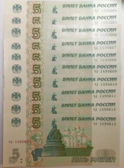 5 копеек 1997 года Серия ЧЛ, десять купюр с номерами подряд!!! Пресс UNC! 2022! Первый выпуск