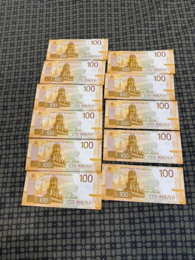 Банкнота 100 рублей сто РФ-Россия бона 2022 АА номера по порядку пресс UNC поштучно Цена+номинал