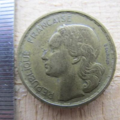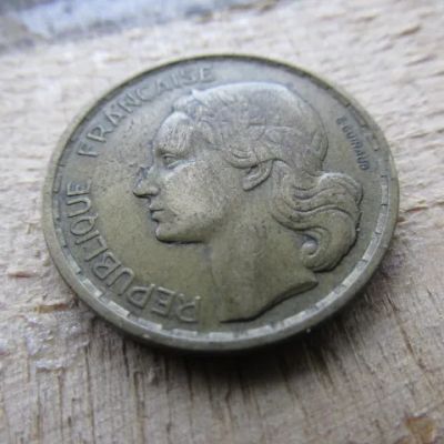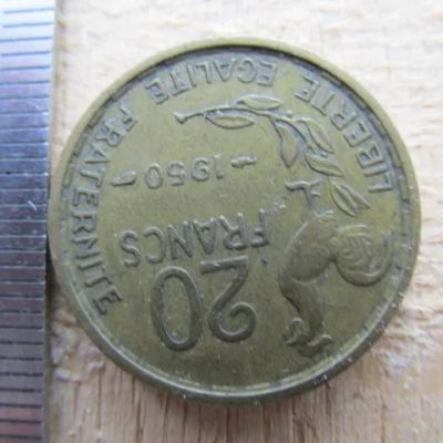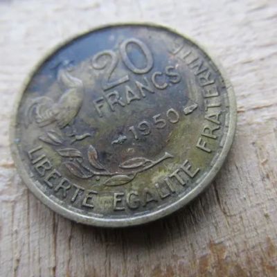 Монета 20 франк Франция 1950 гальский петушок, портрет хорошая