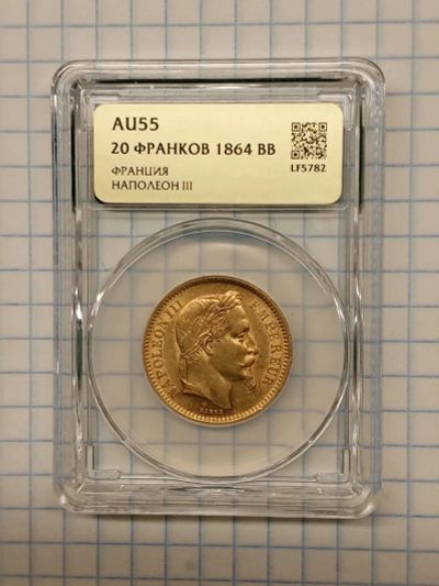 золото 20 франков 1864 г, Франция, Наполеон 3