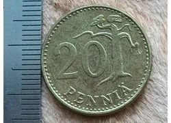 Монета 20 пенни пени Финляндия 1983 герб лев дерево флора хорошая