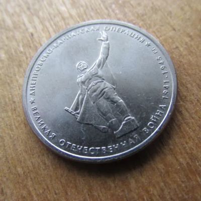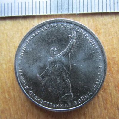 Монета 5 рублей пять Россия 2014 ВОВ Днепровско-Карпатская операция 70 лет Победы. ММД мешковая