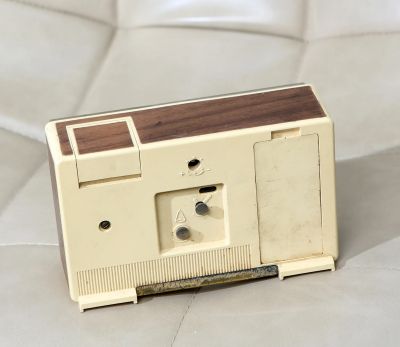 Часы будильник Севани круглые, настольные, пластиковый корпус в ремонт, на запчасти. Сделано в СССР