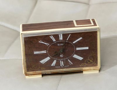 Часы будильник Слава Slava ходят круглые, сизые, экспортные, настольные, механика, металл СССР Б/у