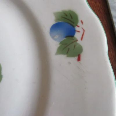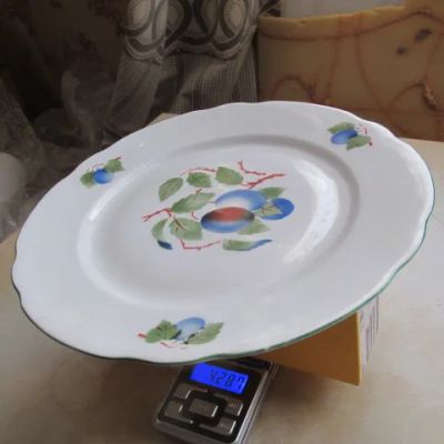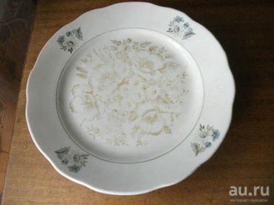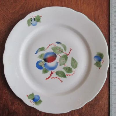 Тарелка, блюдо, подтарельник Д=24 см Сливы клеймо Коростень 1953-1957 гг фарфор СССР Б/у