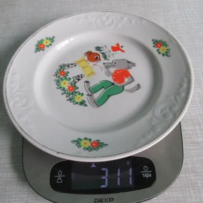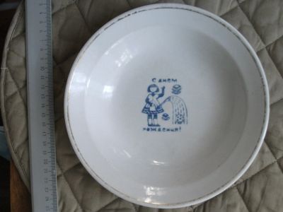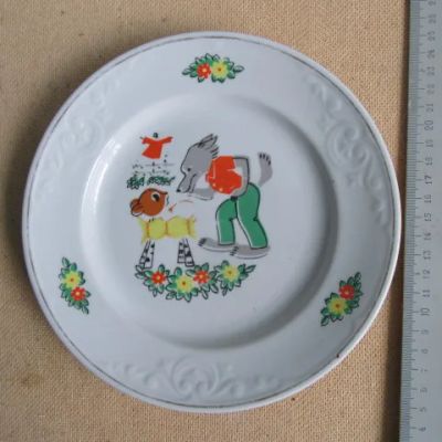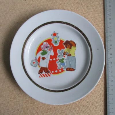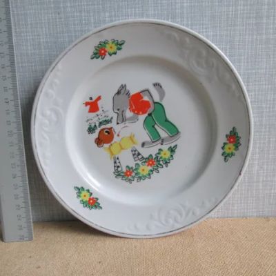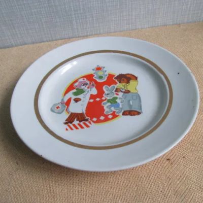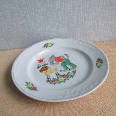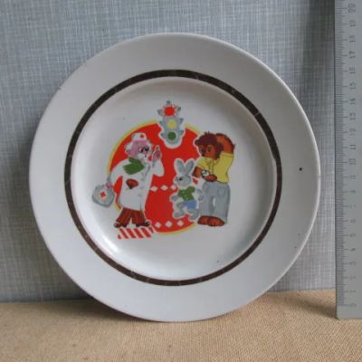Тарелка детская, второго блюда 20,5 см. Домашнее хозяйство, животные. Владивосток клеймо 1981-1991