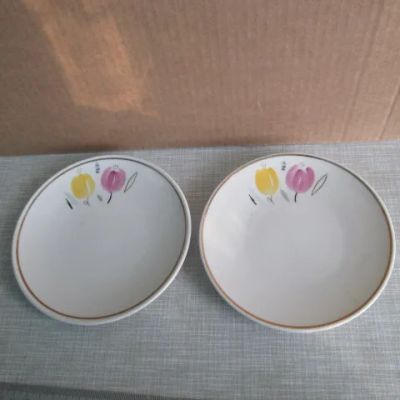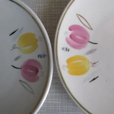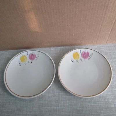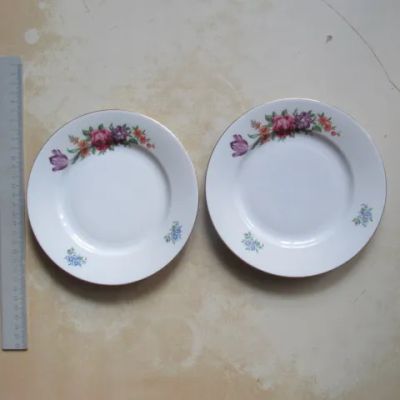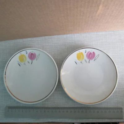 Тарелка, блюдце чайное роспись Тюльпан D-14,5 см клеймо Хайта 1965-1970 гг. фарфор СССР набор 2 шт.