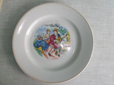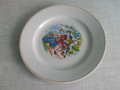 Тарелка неглубокая 24 см Куртуазная сценка клеймо Пролетарий 1976-91гг фарфор СССР
