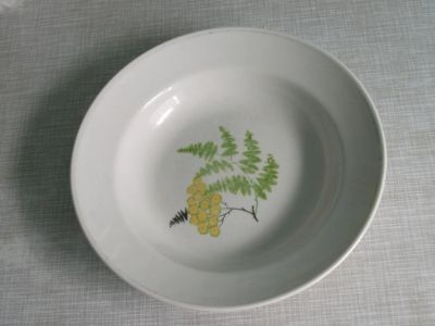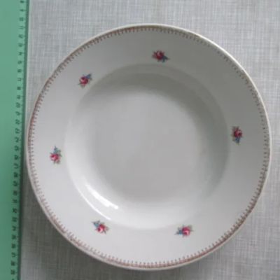 Тарелка порционная (суповая) 24 см "Мимоза" клеймо 1962-1971 гг. Красный фарфорист фарфор СССР скол