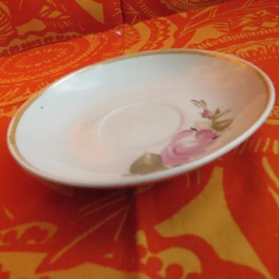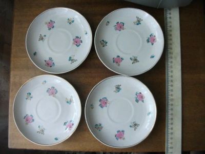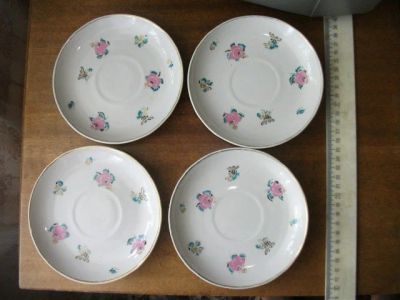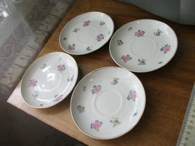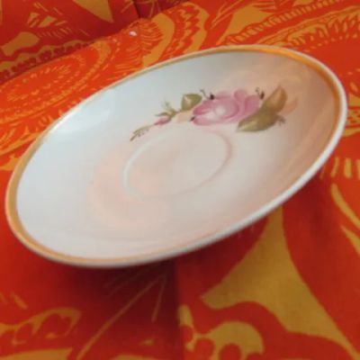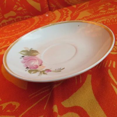 Тарелка, блюдце чайное D-14,8 см Розовые цветы клеймо 1991 г. Хайта фарфор СССР