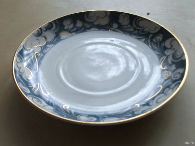 Тарелка порционная / суповая / первое. Клеймо ДФЗ Вербилки клеймо 1954-1965 гг золотой кант. СССР