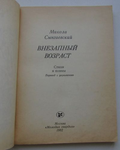 Внезапный возраст. Стихи и поэмы. Сынгаевский Николай Федорович (Сынгаевский Микола). Перевод с украинского. Москва. Молодая гвардия. 1982 г.