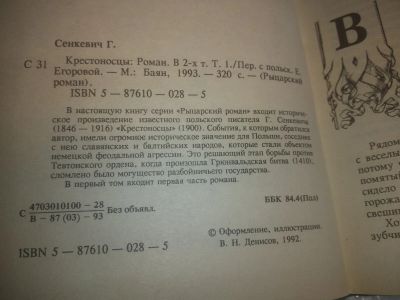 ок. (5092307А) Генрик Сенкевич. Крестоносцы. В 2-х томах. 1993 г.