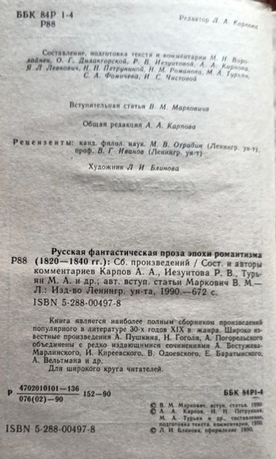 Карпов Александр, Виролайнен Мария, Дилакторская Ольга, Иезуитова Раиса (составители) - Русская фантастическая проза эпохи романтизма (1920-1840) / Авторы: А. Погорельский, А. Бестужев-Марлинский, О. Сомов и др. / Вст. статья: В. Маркович