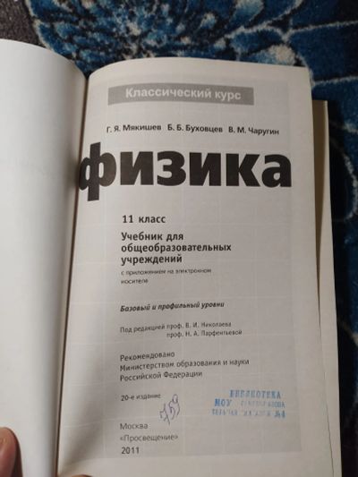 Мякишев Буховцев Чаругие Физика Классический курс 11 класс без диска 2011