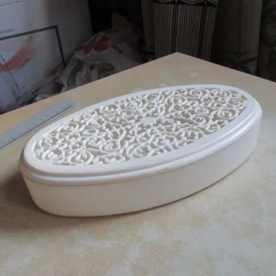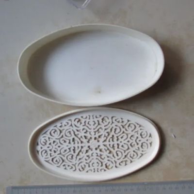 Шкатулка овал 20,5х11,5х4 см ажурная белый колкий пластик клеймо Алма-Ата СССР б/у хорошая