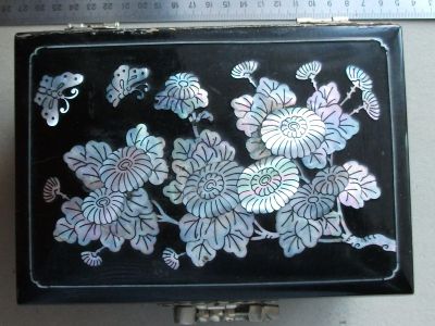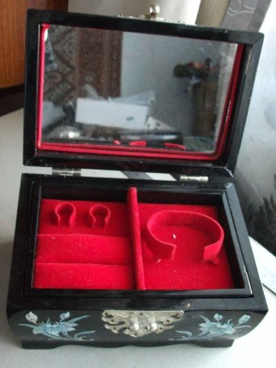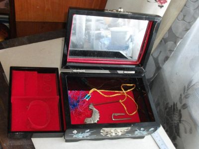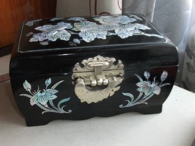 Шкатулка для украшений с замком черный лак перламутр Юго-восточная Азия дефект