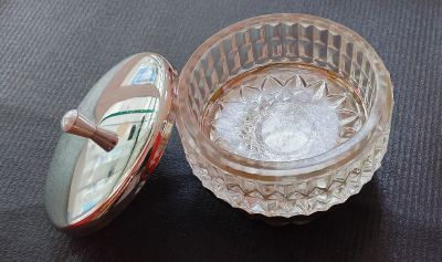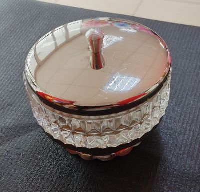 Шкатулка на ножке металл декорированный эмаль перламутровая СССР б/у