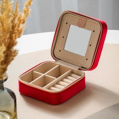 Шкатулка для украшений, вельвет, 10х10х5 см, красная, A320032